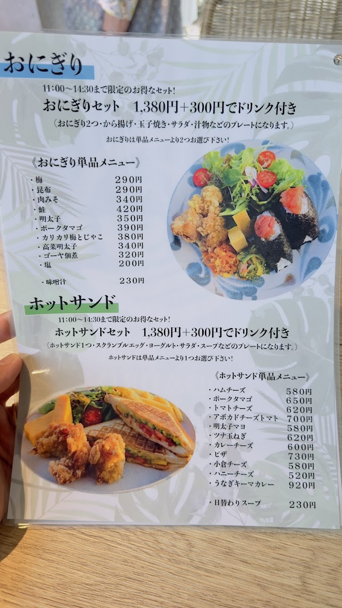 At cafe_lush in Okinawa's Nanjo City, the menu is a delightful blend of fresh, local flavors showcased in a serene beachside setting. One of their standout offerings is the ふわふわおにぎりのワンプレート (fluffy rice ball plate), allowing guests to select two rice balls of their choice, beautifully presented for JP¥1,380. This dish reflects the café's commitment to simplicity and flavor, perfect for a relaxing breakfast.